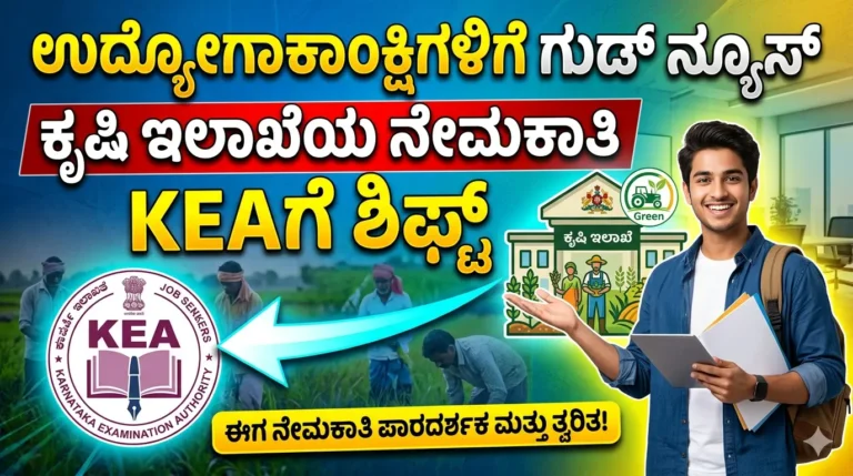 ರಾಜ್ಯ ಸರ್ಕಾರದ ಮಹತ್ವದ ಆದೇಶ: KPSC ಬದಲು KEA ನಡೆಸಲಿದೆ ನೇಮಕಾತಿ ಬೆಂಗಳೂರು: ರಾಜ್ಯದ ಉದ್ಯೋಗಾಕಾಂಕ್ಷಿಗಳ ಗಮನ ಸೆಳೆದಿರುವ ಮಹತ್ವದ ಬೆಳವಣಿಗೆಯಲ್ಲಿ, ಕೃಷಿ ಇಲಾಖೆಯ ನೇಮಕಾತಿ …