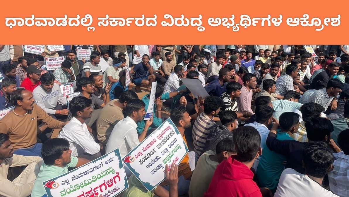 ಧಾರವಾಡದಲ್ಲಿ ಸರ್ಕಾರದ ವಿರುದ್ಧ ಅಭ್ಯರ್ಥಿಗಳ ಆಕ್ರೋಶದ ಫಲವಾಗಿ ವಿದ್ಯಾಭ್ಯಾಸದ ನೆಲ, ಸಂಸ್ಕೃತಿಯ ನಾಡು, ವಿದ್ಯಾರ್ಥಿಗಳ ಕನಸುಗಳ ಊರು — ಇಂತಹ ಹೆಗ್ಗಳಿಕೆಗೆ ಪಾತ್ರವಾದ Dharwad ಇತ್ತೀಚೆಗೆ ವಿಭಿನ್ನ ದೃಶ್ಯಕ್ಕೆ ಸಾಕ್ಷಿಯಾಯಿತು. ಸಾಮಾನ್ಯವಾಗಿ ಕಾಲೇಜುಗಳ ಗದ್ದಲ, ಗ್ರಂಥಾಲಯಗಳ ಮೌನ, ಪರೀಕ್ಷಾ ತಯಾರಿಯ ಒತ್ತಡಗಳಿಂದ ತುಂಬಿರುವ ಈ ನಗರದಲ್ಲಿ ಈ ಬಾರಿ ಕೇಳಿಬಂದದ್ದು ಘೋಷಣೆಗಳ ಗರ್ಜನೆ.
