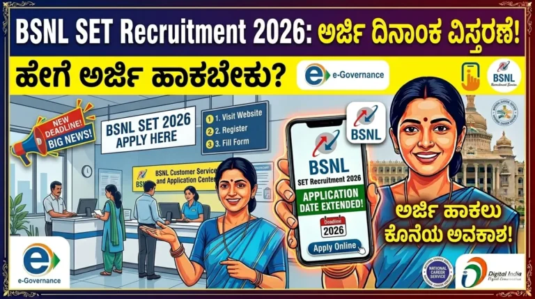BSNL Recruitment 2026: ಅರ್ಜಿ ಸಲ್ಲಿಸಲು ಕೊನೆಯ ದಿನಾಂಕ ವಿಸ್ತರಣೆ, 120 ಹುದ್ದೆಗಳಿಗೆ ಹೊಸ ಅವಕಾಶ ಭಾರತದ ಪ್ರಮುಖ ಸಾರ್ವಜನಿಕ ವಲಯದ ಟೆಲಿಕಾಂ ಕಂಪನಿಗಳಲ್ಲಿ ಒಂದಾದ Bharat …