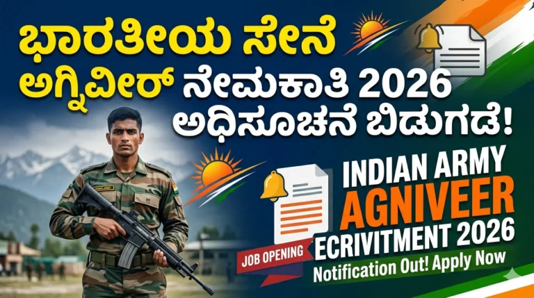 ಭಾರತೀಯ ಭೂಸೇನೆ ಅಗ್ನಿವೀರ್ ನೇಮಕಾತಿ 2026: ದೇಶಸೇವೆಗೆ ಸುವರ್ಣ ಅವಕಾಶ ದೇಶದ ಗಡಿ ಕಾಯುವ, ಭಾರತೀಯ ಸೇನೆಯ ಭಾಗವಾಗುವ ಹಂಬಲ ಪ್ರತಿ ಯುವಕನಿಗೂ ಇರುತ್ತದೆ. ಕೇಂದ್ರ …